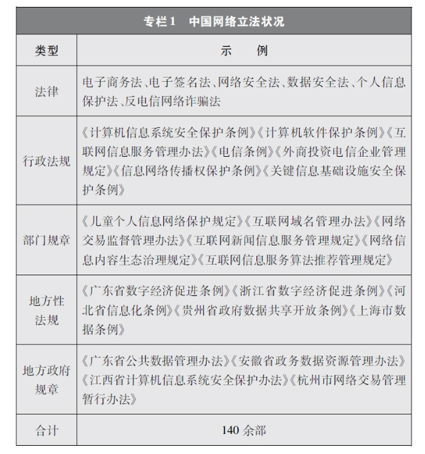中國網(wǎng)絡(luò)立法隨著互聯(lián)網(wǎng)發(fā)展經(jīng)歷了從無到有、從少到多、由點到面、由面到體的發(fā)展過程。第 一階段從1994年至1999年,是接入互聯(lián)網(wǎng)階段。上網(wǎng)用戶和設(shè)備數(shù)量穩(wěn)步增加。這一階段網(wǎng)絡(luò)立法主要聚焦于網(wǎng)絡(luò)基礎(chǔ)設(shè)施安全,即計算機系統(tǒng)安全和聯(lián)網(wǎng)安全。第二階段從2000年至2011年,是PC互聯(lián)網(wǎng)階段。隨著計算機數(shù)量逐步增加、上網(wǎng)資費逐步降低,用戶上網(wǎng)日益普遍,網(wǎng)絡(luò)信息服務(wù)迅猛發(fā)展。這一階段網(wǎng)絡(luò)立法轉(zhuǎn)向側(cè)重網(wǎng)絡(luò)服務(wù)管理和內(nèi)容管理。第三階段從2012年至今,是移動互聯(lián)網(wǎng)階段。這一階段網(wǎng)絡(luò)立法逐步趨向全面涵蓋網(wǎng)絡(luò)信息服務(wù)、信息化發(fā)展、網(wǎng)絡(luò)安全保護等在內(nèi)的網(wǎng)絡(luò)綜合治理。在這一進程中,中國制定出臺網(wǎng)絡(luò)領(lǐng)域立法140余部,基本形成了以憲法為根本,以法律、行政法規(guī)、部門規(guī)章和地方性法規(guī)、地方政府規(guī)章為依托,以傳統(tǒng)立法為基礎(chǔ),以網(wǎng)絡(luò)內(nèi)容建設(shè)與管理、網(wǎng)絡(luò)安全和信息化等網(wǎng)絡(luò)專門立法為主干的網(wǎng)絡(luò)法律體系,為網(wǎng)絡(luò)強國建設(shè)提供了堅實的制度保障。