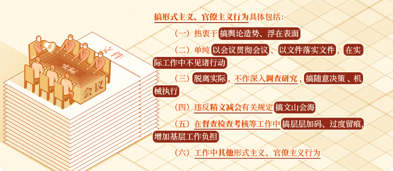 該內(nèi)容為此次修訂《條例》新增。此類行為主要表現(xiàn)為沒(méi)有做到不發(fā)不切實(shí)際、內(nèi)容空洞的文件,不開(kāi)應(yīng)景造勢(shì)、不解決問(wèn)題的會(huì)議。