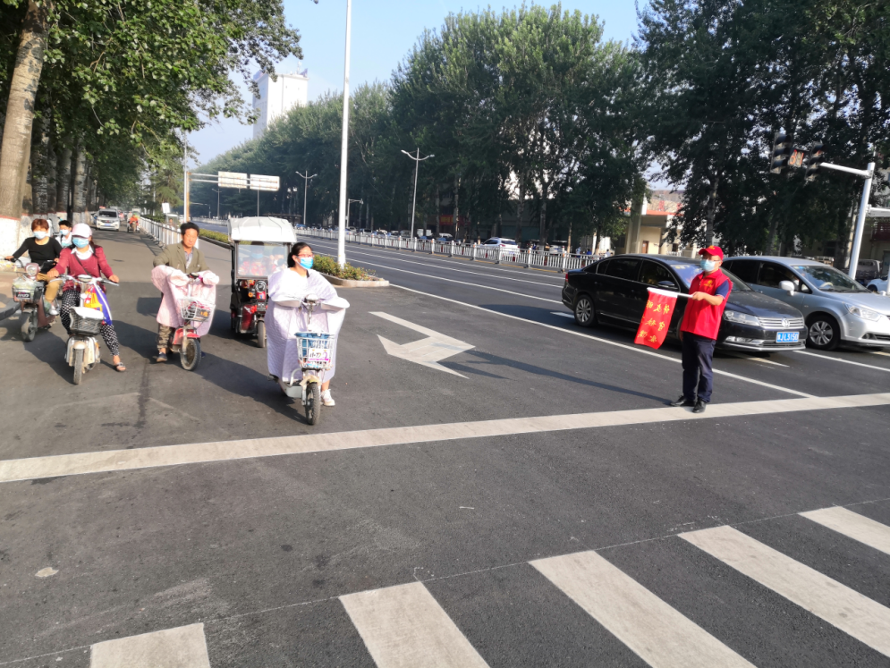 雖然天氣炎熱,志愿者們依然堅(jiān)守崗位,認(rèn)真開展"文明交通"勸導(dǎo)活動(dòng)。身穿紅馬甲,手持指揮旗,志愿者每?jī)扇艘唤M整齊地站在斑馬線兩側(cè),積極勸導(dǎo)身邊的行人,不放過(guò)任何一種違反交通規(guī)則的行為,使得路口交通秩序井然有序。志愿者們?cè)诮煌▓?zhí)勤過(guò)程中,還不忘熱心幫助他人,攙扶老人、孩子、殘疾人過(guò)馬路,為問(wèn)路人指明方向等等,受到過(guò)往行人的陣陣好評(píng)同時(shí)及時(shí)勸導(dǎo)行人不按信號(hào)燈通行、電動(dòng)車逆行、不按道行駛等不文明行為,并呼吁廣大市民積極響應(yīng)創(chuàng)建全國(guó)文明城市文明交通勸導(dǎo)活動(dòng),彰顯“全國(guó)文明單位”良好形象。