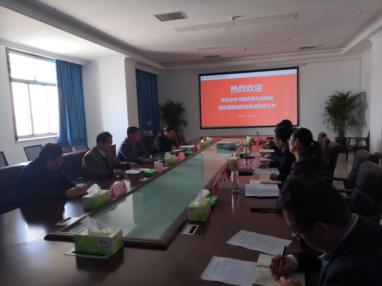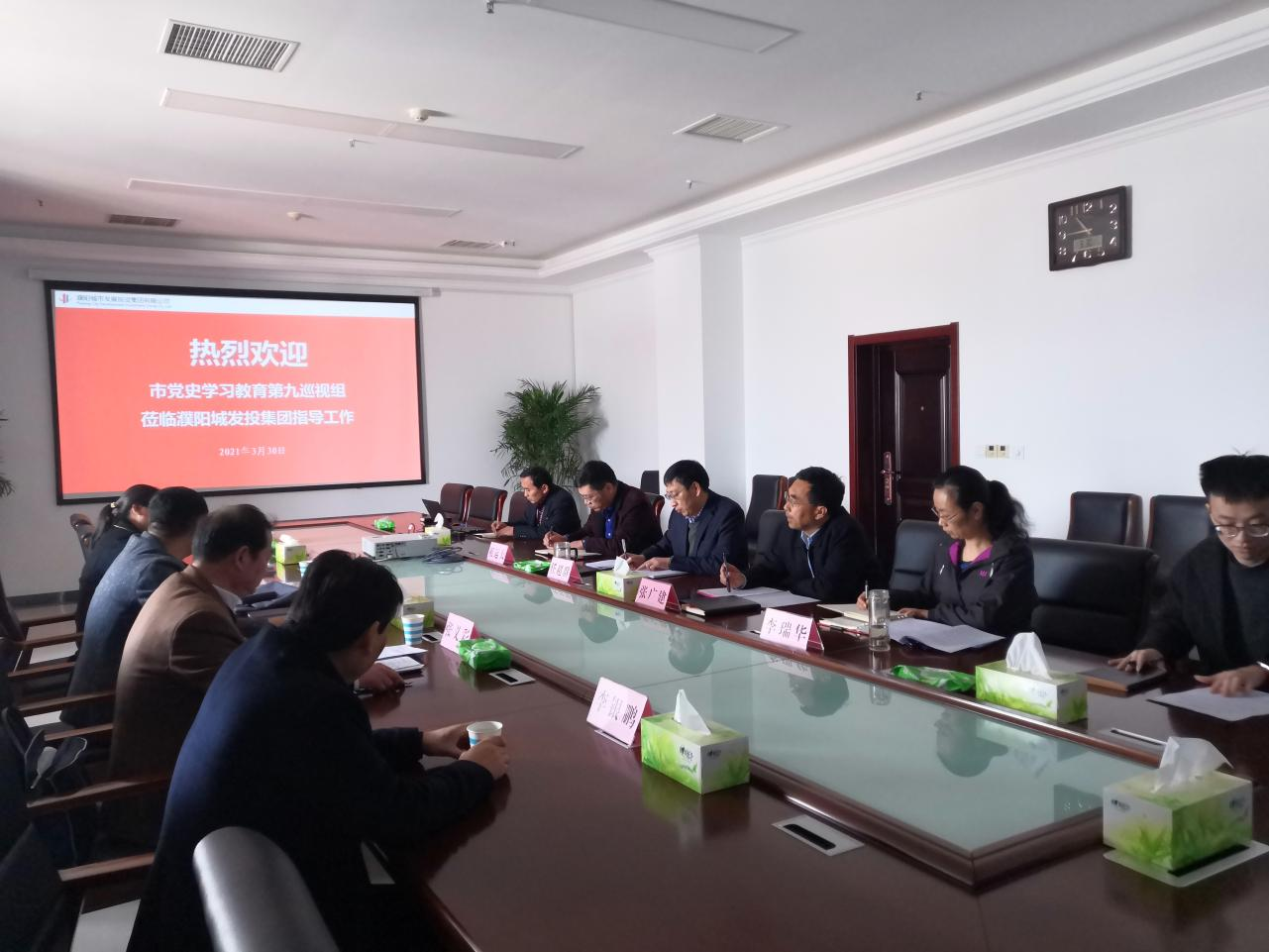 3月30上午10:30點,濮陽城發(fā)投集團黨史學(xué)習(xí)教育巡視座談會在集團公司13樓會議室召開。市黨史學(xué)習(xí)教育第九巡回指導(dǎo)組、集團公司黨史學(xué)習(xí)教育領(lǐng)導(dǎo)小組成員及領(lǐng)導(dǎo)小組辦公室部分同志出席會議。